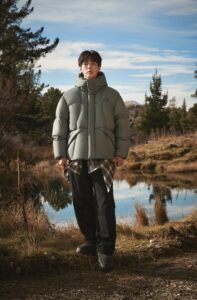 아울러 윤리적 다운 인증(RDS, Responsible Down Standard)을 받은 구스 충전재와 전면 플라켓 구조 및 밑단 스트링을 적용하고, 발수 가공 처리를 더해 보온성이 뛰어나고 겨울철 눈과 비에 효과적으로 대응이 가능하다. 또한 세로 절개 라인을 통해 입체적인 실루엣을 완성했고, 볼륨감 있는 플랫 포켓과 넓은 챔버 간격으로 자칫 단조롭기 쉬운 다운 패션에 디자인 포인트를 더했다.