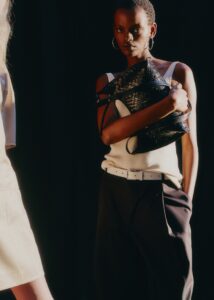 실루엣은 마이크로 미니부터 드라마틱한 롱 기장까지 다양하게 전개되며, 유연함과 정교함을 동시에 담았다. 컬러 팔레트는 블랙, 브라운, 화이트, 그레이 등 뉴트럴 톤을 기반으로, 레드, 버건디, 딥 퍼플 등 깊이 있는 컬러와 생동감 있는 레오파드 패턴이 감각적인 포인트를 더한다.