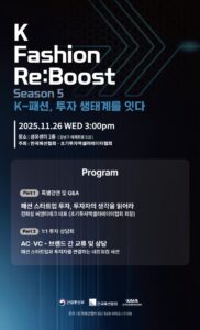 한편, 이번 협약을 기념해 오는 11월 26일(수) 오후 3시, 서울 강남구 대치동 섬유센터 2층에서 ‘K-패션 리부스트 세미나(K-Fashion Re:boost)’가 공동 개최되며, 전화성 회장의 특별 강연과 패션 스타트업-투자사 1:1 투자 상담회가 진행된다.
