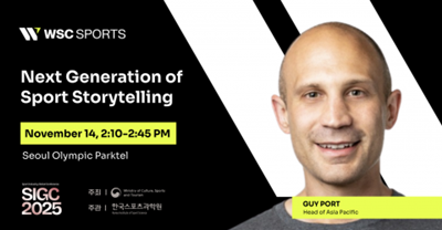 첫 번째 발표자로 나선 스포츠 AI 기업 WSC Sports의 아시아 총괄 가이 포트(Guy Port)는 ‘차세대 스포츠 스토리텔링의 진화(The Next Generation in Sports Storytelling)’를 주제로 발표를 진행했다. 그는 디지털 전환이 가속화된 오늘날, 스포츠 콘텐츠가 단순한 경기 중계를 넘어 AI를 통한 팬 참여 중심의 경험으로 진화하고 있다고 강조했다.