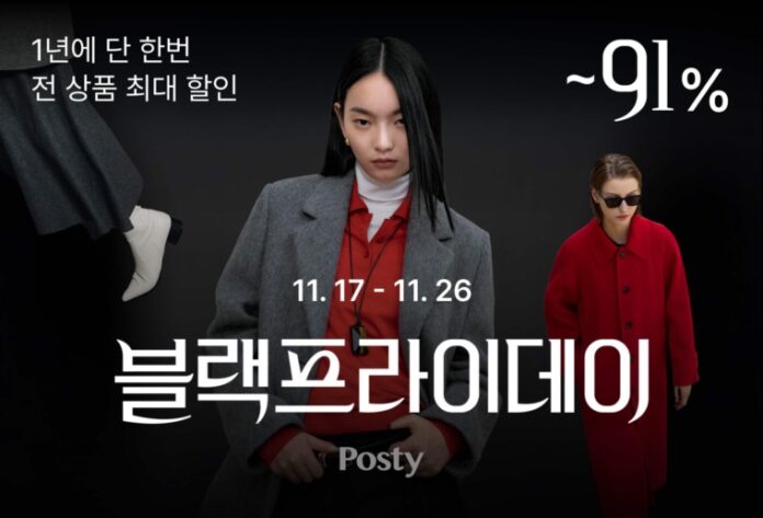 카카오스타일(Kakao Style, 대표 서정훈)이 운영하는 4050 패션 플랫폼 ‘포스티’가 전 상품을 연중 최대 할인가에 판매하는 ‘포스티 블랙 프라이데이’를 오는 11월 26일까지 진행한다.