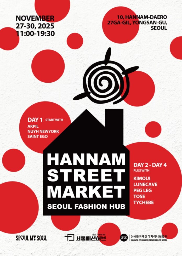 서울시(시장 오세훈)의 지원을 받아 운영 중인 ‘서울패션허브’가 오는 11월 27일부터 30일까지 서울 용산구 한남동 데패뉴에서 ‘서울패션허브 팝업스토어’를 개최한다. 행사에는 국내 유망 신진 디자이너 브랜드 8개가 참여하며, 브랜드별 최대 70% 할인 혜택이 제공될 예정이다.