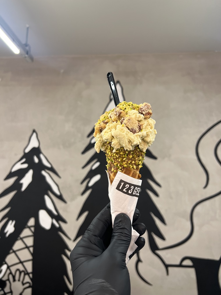 123젤라또는 특유의 커스터마이징 방식의 프리미엄 젤라또와 국내 유일 젤라또 케이크를 선보이고 있다. 브랜드명에 있는 숫자 ‘123’은 총 세 개의 단계로 나눈 커스터마이징 방식을 뜻하며 1단계는 콘(5종), 2단계는 젤라또(12종), 3단계는 토핑(10종)으로 다양하게 조합 가능한 방식을 의미한다.