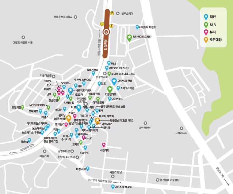 이처럼 한남동은 꾸준한 상권 활성화 속에 업종 구조의 변화와 함께 패션 중심 상권으로서의 입지가 한층 더 강화되고 있다.
