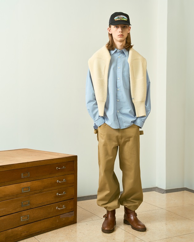 브랜드의 시그니처 아이템으로는 매년 FW 시즌에 꾸준히 사랑받는 투어리스트 발마칸 코트(Tourist Balmacaan Coat)와 리가즈 해링턴 블루종(Rigards Harrington Blouson)이 있다. ‘투어리스트 발마칸 코트’는 전통적인 발마칸 코트를 현대적으로 재해석한 아이템으로, 인체공학적 패턴을 적용한 래글런 슬리브와 하이브리드 구조가 특징이다. 이와 함께 여유 있는 실루엣과 구조적 밸런스를 유지하면서도 자연스러운 스타일을 구현했다.