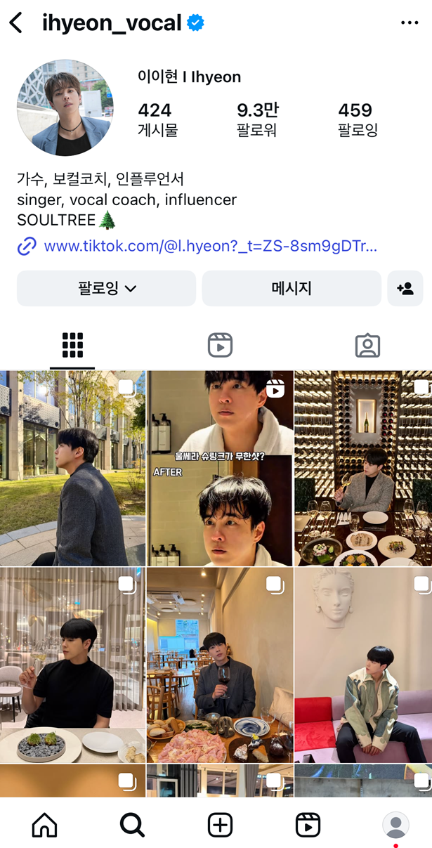 그는 인스타그램에서 가수와 크리에이터로서의 매력을 각각 살리기 위해 콘텐츠 스타일을 구분해 업로드하고 있다. 현재 릴스에는 주로 본인의 노래 영상을 올리고, 사진 피드에는 브랜드 행사 참석, 광고, 일상 등을 중심으로 게시한다.