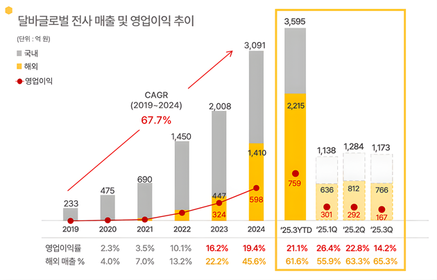 ◇ 달바글로벌, 2025년 3분기 매출 59% 성장…해외 매출 비중 65%