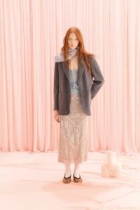 모던 럭셔리 컨템포러리 브랜드 ‘빈스’ 역시 2026 SS 프리 컬렉션에서 페이크 퍼 재킷, 글리터 스웨터·스커트 제품 군을 선보이며 연말부터 연초까지 이어지는 수요를 선점했다.