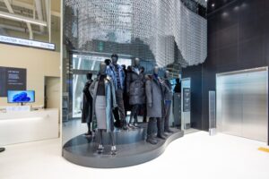 매장 인테리어는 코오롱세이브프라자만의 공간 콘셉트를 명확히 드러내는 데 초점을 맞췄다. 외부는 화이트 톤의 파사드 디자인을 적용해 코오롱세이브프라자 타 지점과 연결된 건축 설계로 브랜드 정체성을 강조했다. 내부는 브랜드별 진열이 아닌 스타일 단위로 편집한 상품 구성을 통해 쇼핑의 직관성을 높였다. 스타일링 카테고리에 따라 공간 톤을 달리하고 키워드 전광판을 배치해 쇼핑 편의성도 강화했다. VP존(Visual Presentation Zone)의 경우, 재고 부자재와 같은 사용하지 않는 자원을 재구성해 공간의 포인트로 연출했다.