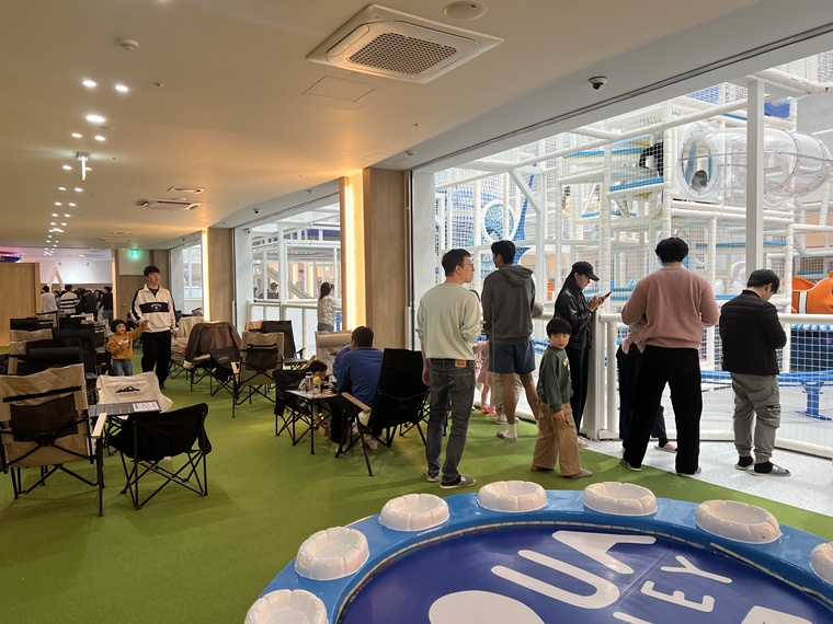 아쿠아밸리는 피크닉 밸리로써 육아에 지친 부모님들이 캠핑 온 것처럼 편안하게 음식과 차를 마시며 쉴 수 있는 공간이다.