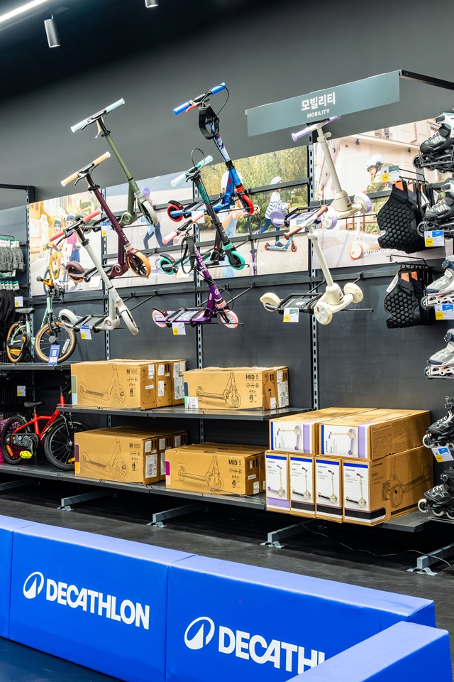 또한 ‘러너 전용 서비스 공간’에서 ‘일반 쇼핑 전용 공간’으로 넘어가면 가족 단위 방문객이 많은 스타필드 빌리지의 특성을 고려해 키즈 전용 킥보드와 인라인 제품을 구매할 수 있는 존을 마련했고, 아이들이 직접 체험할 수 있는 기능까지 갖춰 ‘쇼핑 그 이상’의 경험을 제공하고 있다. 또한 멀티 스포츠 브랜드의 정체성을 살려 러닝·축구·야구·농구 등 약 550여 종의 스포츠 용품을 구비해 데카트론의 버라이어티한 제품력을 한자리에서 경험할 수 있도록 했다.