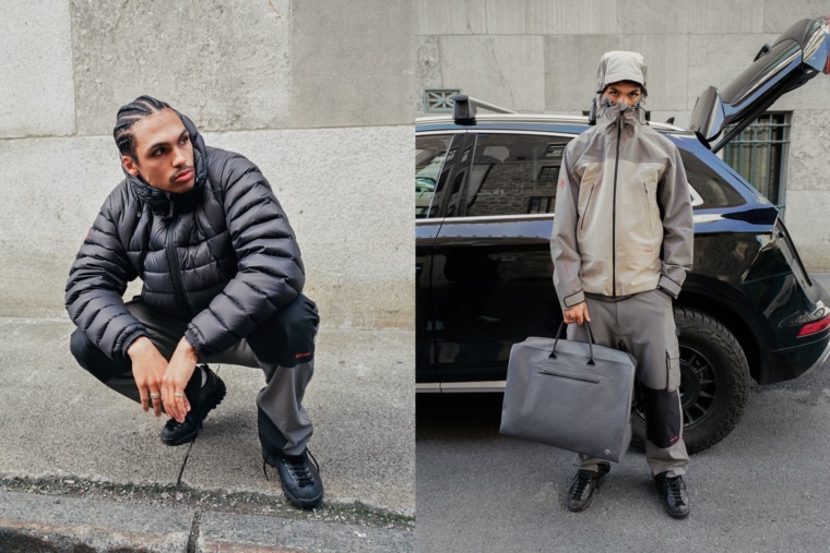 제품군은 방수·방풍·통기성에 특화된 고기능성 소재를 기반으로 한다. 여기에 자운드 시그니처인 절제된 무드의 조화를 위해 그레이, 토프, 딥 뉴트럴 컬러 팔레트를 사용했으며, 리얼트리 카모 패턴과 레드 스티치 디테일을 더해 미니멀한 디자인 속에서도 강렬한 대비감을 완성했다.