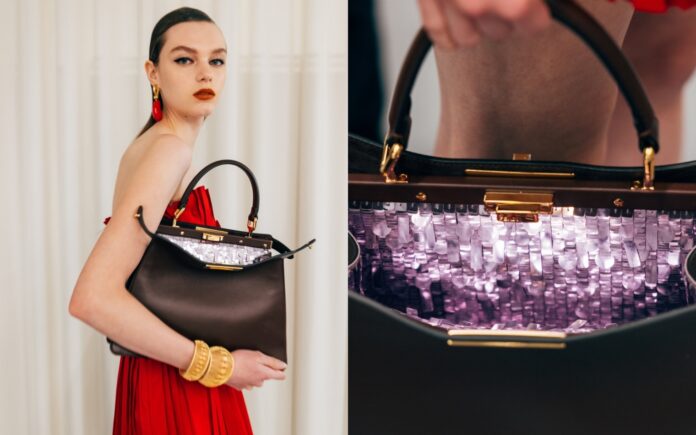 2026 봄-여름 시즌, 피카부 백은 본연의 DNA에 집중하며 대담한 여성성, 타임리스한 우아함, 경쾌한 감각, 그리고 최고 수준의 사부아 페르(savoir-faire)를 다시 한 번 선보인다. 미니멀한 외관의 백을 열면 파예트, 비즈, 스터드, 크리스털 장식이 풍부하게 어우러진 내부 디테일이 모습을 드러낸다. 모든 장식은 숙련된 장인들의 손길을 거쳐 수작업으로 완성되었으며, 이는 펜디가 이어온 장인 정신과 럭셔리에 대한 기준을 보여준다.