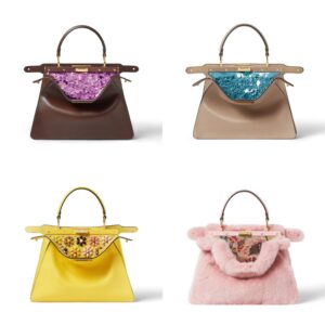 컬렉션의 무드를 반영한 플라워 스터드는 옐로우 피카부 백 내부에 멀티컬러 입체 모자이크로 표현됐으며, 크리스털 플라워 모티프는 마호가니 브라운 피카부 백 안쪽에서 주얼리 같은 포인트를 더한다. 소재에 대한 펜디의 노하우를 집약한 핑크 밍크 피카부 백은 멀티컬러 핸드 비딩 자수를 전체적으로 더해 추상적인 플로럴 모티프를 완성했으며, 제작에는 200시간 이상의 작업이 소요됐다.