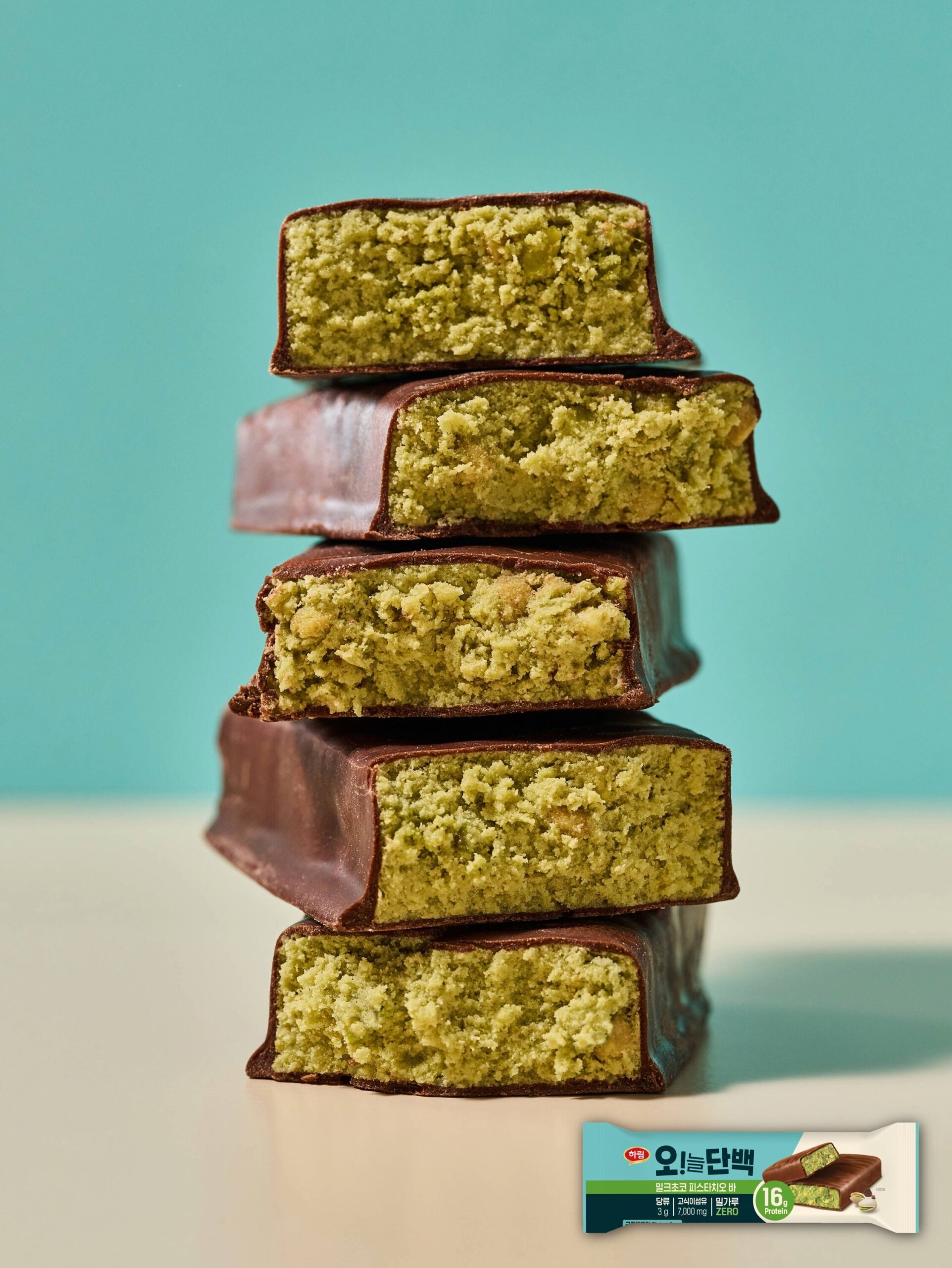 하림(대표 정호석)의 ‘오!늘단백 밀크초코 피스타치오바’는 진한 초코에 고소한 피스타치오와 통아몬드가 들어가 고급스러우면서 부드러운 맛이 특징이다. 풍부한 단백질과 식이섬유를 함유한 반면, 당 함량은 3g으로 낮췄다. 이렇게 맛과 건강 두 마리 토끼를 잡았다는 호평 속 ‘밀크초코 카라멜바’와 함께 출시 10개월 만에 누적 판매량 300만 개를 돌파했다.