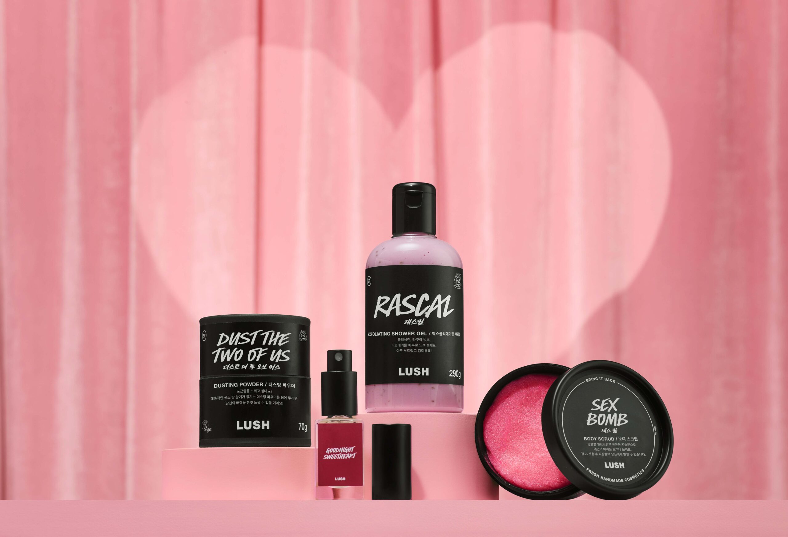 시각적인 즐거움도 놓치지 않았다. 핑크빛 배쓰 아트를 선사하는 배쓰 밤 ‘라이프 인 로지 라이트(Life In Rosy Light)’와 큐피트 화살을 형상화한 리유저블 버블 바 ‘비 마이 발렌타인’ 등 감각적인 디자인이 돋보인다. 이 밖에도 인기 향기인 ‘섹스 밤’ 라인업을 확장하고, 프레쉬 클렌저 ‘러비 더비’를 새롭게 추가해 선택의 폭을 넓혔다.