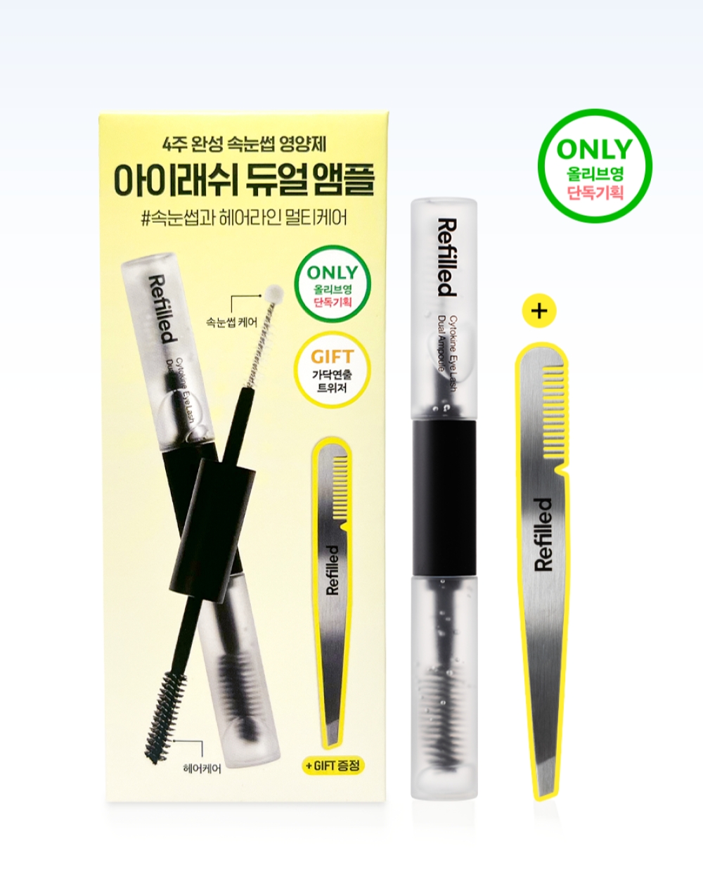 이번 기획세트는 아이래쉬 듀얼 앰플과 트위저로 구성됐으며, 리필드가 속눈썹 케어부터 스타일링까지 전 단계를 아우르는 체계적인 셀프 루틴을 제안하는 것이 특징이다.