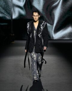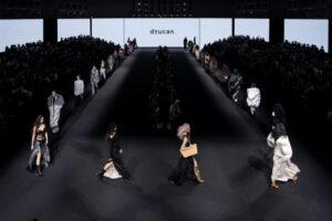 이번 시즌 두칸은 혼란과 속도의 세계에서 벗어나, 정적이지만 강인하고 절제되었으나 깊은 울림을 지닌 아름다움을 표현했다. 쇼는 브랜드 특유의 구조적 실루엣을 중심으로 전개되었다. 절제된 구조미와 유연한 곡선미가 공존하는 테일러링, 미세하게 흐르는 곡선 구조의 패턴 커팅, 바디 라인을 따라 자연스럽게 이어지는 실루엣이 컬렉션 전반을 관통했다.