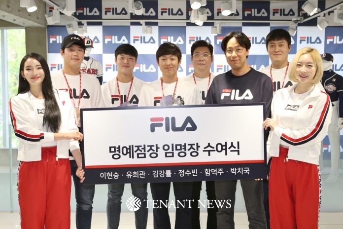 이날 위촉식에는 휠라코리아㈜ 윤근창 대표가 자리해 두산 베어스의 투수 이현승, 유희관, 김강률, 함덕주, 박치국 선수를 각각 휠라 타임스퀘어점, 현대 판교점, 롯데 건대스타시티점, 신세계 강남점, 현대 중동점의 명예 점장으로, 외야수 정수빈 선수를 이태원점의 명예 점장으로 임명했다. 이들에게는 명예 점장 위촉장과 2019년 말까지 유효한 휠라 사원증, 명예 점장 명함 등을 전달했다.