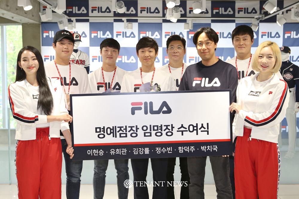 글로벌 스포츠 브랜드 휠라(FILA)는 지난 22일 오후 서울 이태원 휠라 메가숍에서 프로야구팀 두산 베어스의 대표 선수 6인방(이현승, 유희관, 김강률, 정수빈, 함덕주, 박치국 선수)을 ‘2019 휠라 명예 점장’으로 위촉했다고 23일 밝혔다.