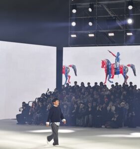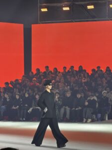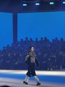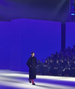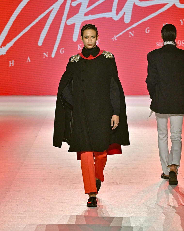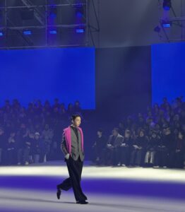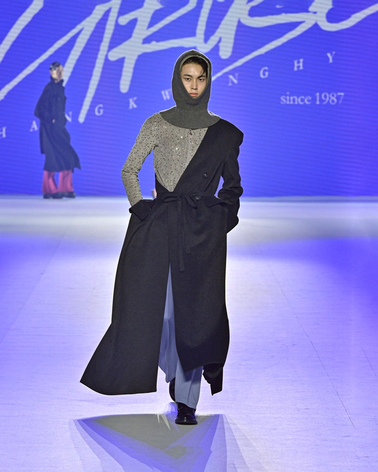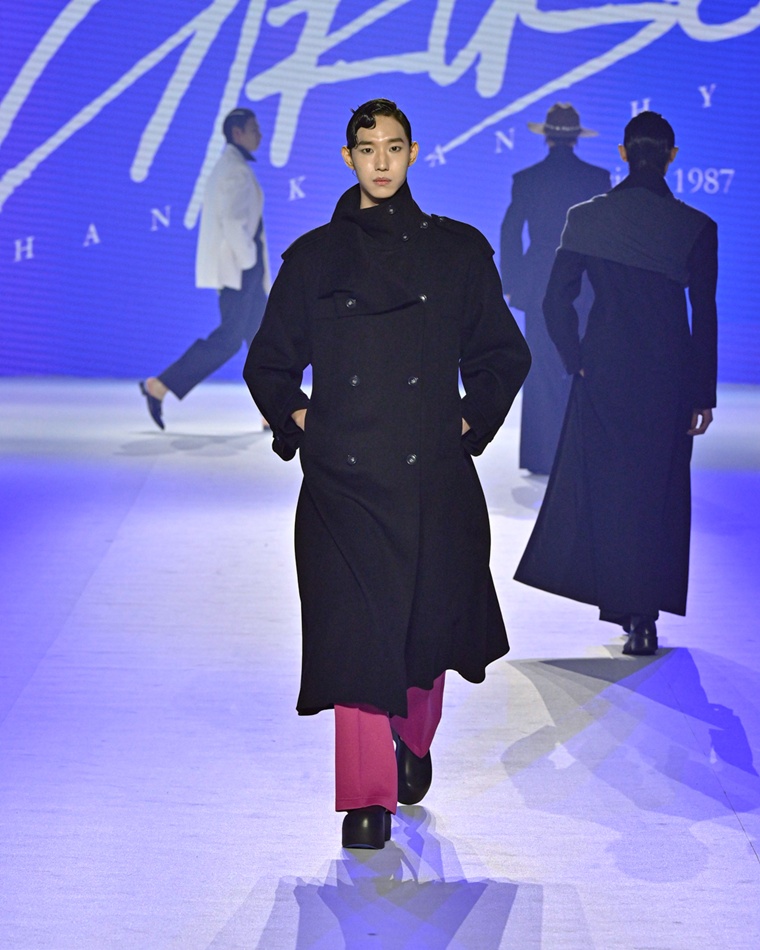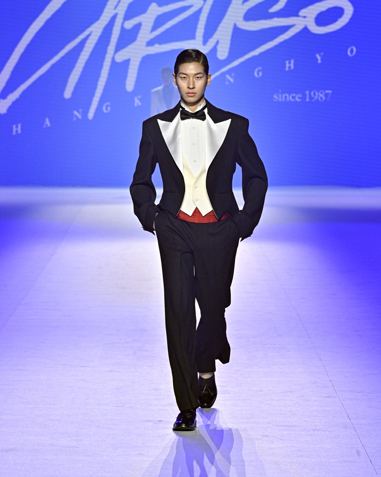 런웨이에는 네이비, 그레이, 블랙 등 절제된 컬러를 중심으로 한 슈트 룩이 이어졌고, 어깨선과 허리 라인이 정돈된 재킷 실루엣이 정밀한 테일러링의 완성도를 드러냈다.