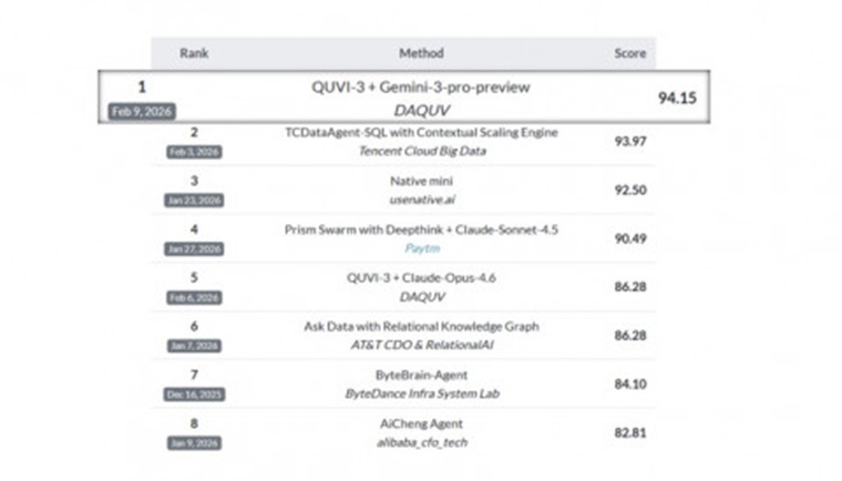 AI 전문기업 다큐브(대표 윤예지)가 미국 예일대(Yale) 연구진이 주도하는 세계 최고 권위의 Text-to-SQL(자연어-데이터 변환) 벤치마크인 ‘Spider 2.0’에서 평가 대상인 3개 트랙(DBT·Lite·Snow) 모두 세계 1위를 석권했다. 중국 텐센트는 다큐브에 이어 2위를 차지했다.