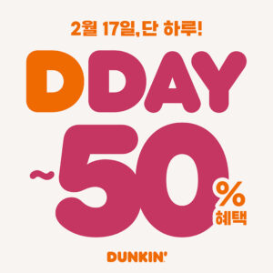 던킨이 설날 당일인 오는 2월 17일 하루 동안 디데이 프로모션을 실시한다. 디데이가 던킨을 상징하는 이니셜 디를 활용한 브랜드 데이를 뜻한다. 고객이 1만 2000원 이상 구매 시 해피포인트 앱에서 최대 4800원 할인 쿠폰과 최대 1200원 포인트 적립을 포함해 최대 50% 혜택을 적용받는다. 만 19세 이상 성인이 포인트 적립 혜택을 온전히 누린다. 소비자가 네이버페이로 1만 2000원 이상 결제할 경우 최대 4800원 할인 혜택을 추가로 받는다.