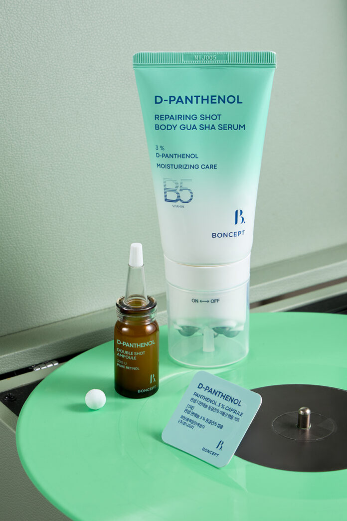 먼저 ‘본셉 D-판테놀 리페어샷 바디 괄사 세럼’이 덱스판테놀 3%와 순수 레티놀을 듬뿍 함유해 손상된 피부 장벽 개선과 진정에 도움을 주는 촉촉한 보습 세럼으로 맹활약한다. 이어서 ‘본셉 D-판테놀 동결건조 더블샷 앰플 키트’가 D-판테놀 3,000ppm 및 순수 레티놀 300IU의 고농도 앰플에 판테놀 3% 동결건조 볼을 신선하게 조합해 최적의 맞춤형 스킨케어 경험을 제공한다.