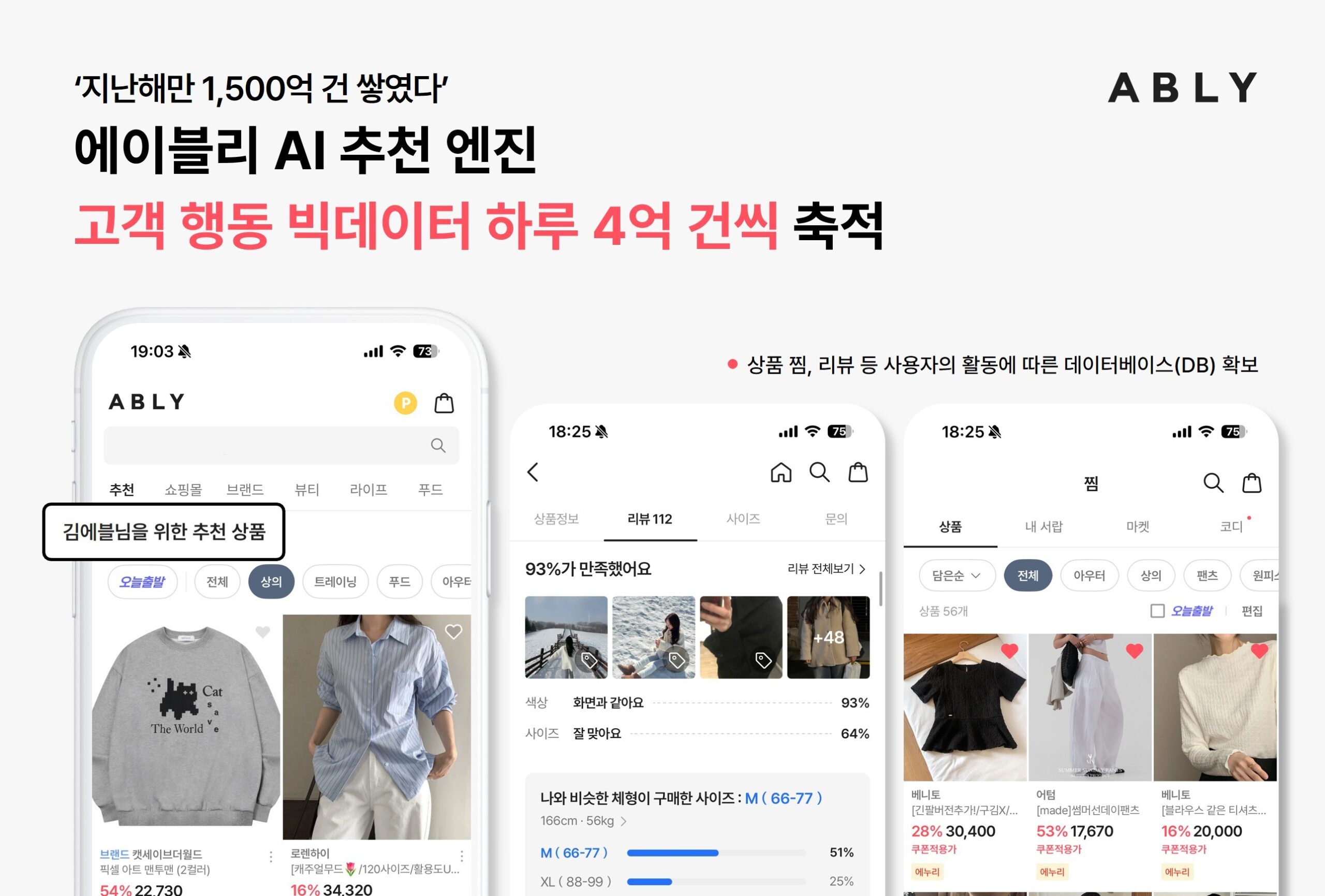 에이블리코퍼레이션(대표 강석훈)이 운영하는 스타일 커머스 플랫폼 에이블리가 하루 평균 4억 건의 고객 행동 빅데이터를 2월 23일 기준 지속 축적해 2025년 한 해에만 약 1500억 건의 데이터를 달성했다.