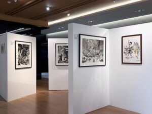 라이브 드로잉 대가의 진면목을 느낄 수 있는 미디어 전시도 마련했다. 3층 대형 미디어월에서는 작가의 정교한 작업 과정을 담은 초고화질 영상을 상영하고 중앙보행광장의 미디어폴에서는 살아 움직이는 듯한 붓끝의 움직임을 영상으로 선보인다. 원화와 미디어 전시 결합을 통해 시각적 몰입감을 제공하는 동시에 색다른 예술적 경험을 선사한다.