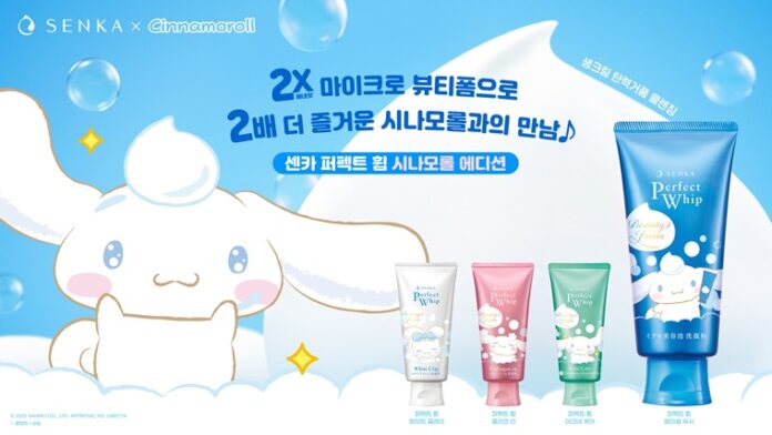 파인투데이코리아(대표 와다유이치)의 스킨케어 토탈 브랜드 센카(SENKA)가 글로벌 인기 캐릭터 산리오캐릭터즈의 ‘시나모롤(Cinnamoroll)’과 협업해 ‘센카 퍼펙트 휩 시나모롤 에디션’ 4종을 한정 출시한다.