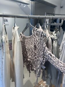 2026 SS 컬렉션에서 가장 두드러지는 요소는 매듭을 활용한 ‘마크라메(MACRAME)’ 디테일이다. 티셔츠 원단을 길게 찢어 엮는 방식으로 제작한 스트랩은 어깨 장식, 벨트 포인트 등으로 활용되고, 탈부착 및 재조합이 가능해 다양한 의류와 스타일링할 수 있는 확장성까지 갖췄다.