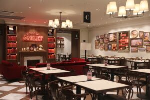 성수낙낙점은 팝업 당시 상징적이었던 미국 가정집 모티프의 거실 콘셉트를 유지했다. 벽난로와 붉은 소파, 은은한 조명, ‘하우스오브애슐리’ 조명 사인 등 전시 요소를 이어가 따뜻한 무드를 구현했다. 또한 소녀 ‘애슐리’의 의상과 소품 등 상징적 오브제를 배치해 브랜드 스토리를 직접 경험할 수 있도록 구성했다.