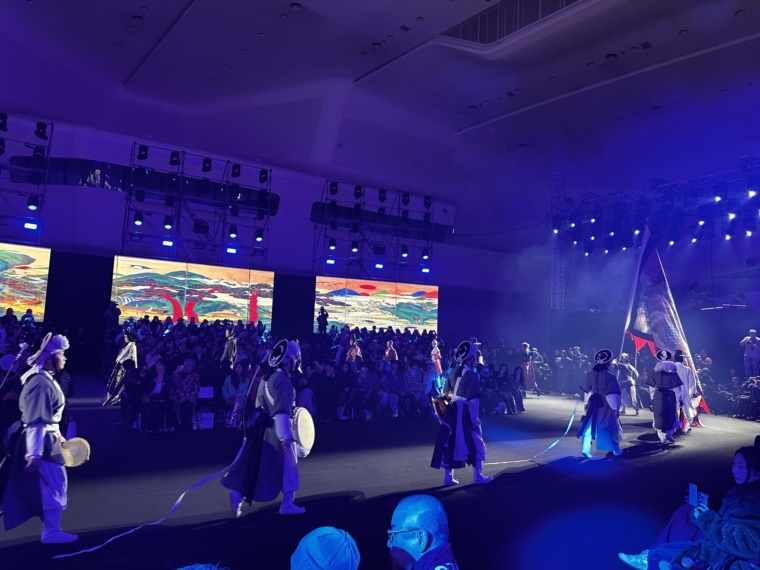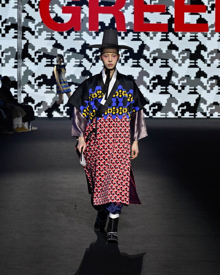 한복 요소를 반영한 룩과 그래픽 프린팅 룩이 교차하며 등장한데 이어 레드 계열을 비롯해 베이지 톤과 고채도 포인트 컬러가 더해져 환상적인 분위기를 자아내 진한 감동과 여운을 남겼다.