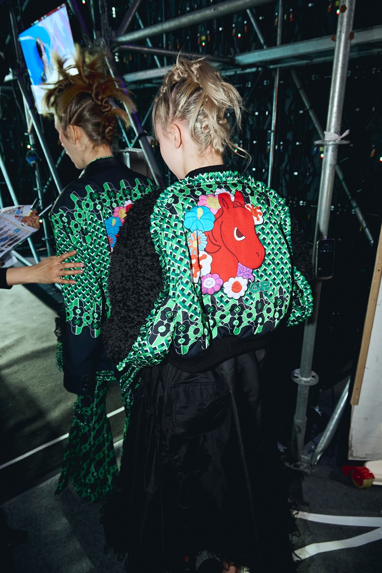 그래픽 프린트는 화면을 채우는 패턴으로 반복적으로 등장하며 패턴의 밀도를 높이는 동시에 블랙 계열 룩도 일부 구간에서 등장해 구조적인 실루엣과 그래픽 패턴이 함께 등장하며 대비를 이뤘다.