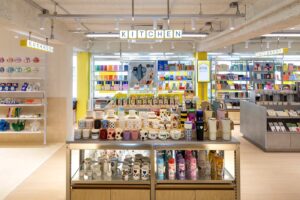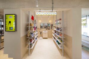 2층은 디저트·잼·오일·차·커피·이너뷰티 등을 구성한 푸드 팬트리존, 3층은 주방·욕실을 재현한 몰입형 쇼룸으로 꾸몄다. 전 상품에 QR코드를 적용해 회원 할인가와 후기를 현장에서 확인할 수 있는 O4O 쇼핑 환경도 구축했다. 외관은 1980년대 구옥의 적벽돌 구조를 유지하고, 내부는 브랜드 대표 컬러인 옐로우 톤으로 연출해 빈티지 무드를 강조했다.