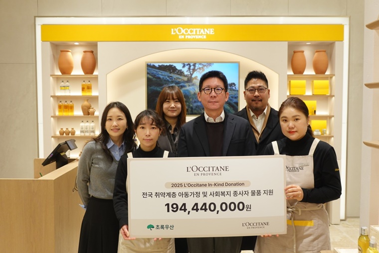 록시땅코리아(한국 지사장 김승빈)는 2025년 한 해 동안 총 두 차례에 걸쳐 초록우산에 약 1억 9천만 원 상당의 생활·위생용품을 기부했다. 이번 기부는 취약계층 아동과 자립준비청년, 미혼모 가정은 물론, 현장에서 아이들을 돌보는 사회복지 종사자와 자원봉사자까지 지원 대상으로 포함해, 보다 폭넓은 사회적 연대를 실천했다는 점에서 의미를 더한다.
