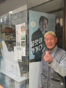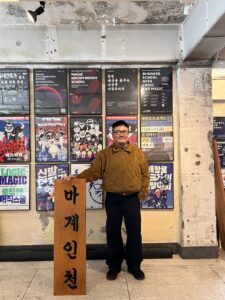 한평생 붓을 들고 거리를 아름답게 물들여온 그는 어느 날, 인천맥주의 ‘개항로 맥주’ 메인 모델로 발탁되며 단숨에 화제의 중심에 섰다. 그의 전시회 팸플릿 한편에는 ‘중구는 나를 조그마한 스타로 만든 곳’이라고 소개하며, 개항로를 향한 깊은 애정을 드러냈다.