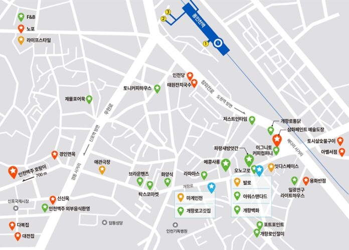 남겨진 원도심은 점차 활력을 잃었고, 개항로 역시 비어 있는 점포들이 늘어나며 한동안 ‘죽은 거리’로 불렸다. 그러나 지금의 개항로는 다른 얼굴을 하고 있다. 배다리 사거리와 경동 사거리 사이 약 600m 구간의 직선 도로와 인근 골목을 중심으로 형성된 이 상권은 과거의 흔적을 지우지 않고, 오히려 전면에 내세운 ‘로컬 브랜딩’의 대표 사례로 떠올랐다.