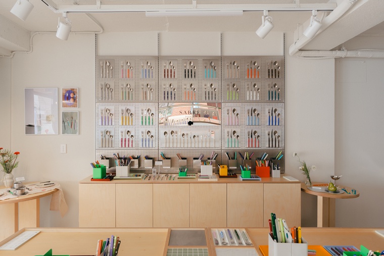 파리 마레 지구의 분위기를 성수 특유의 거친 소재와 결합해 모던한 공방의 정취를 자아내는 이곳은 방문객의 취향을 직접 투영할 수 있는 차별화된 서비스를 통해 브랜드 경험의 깊이를 더한다. 핸들과 헤드의 컬러를 자유롭게 조합하는 커스터마이징과 젓가락 각인 서비스는 세상에 하나뿐인 ‘나만의 커트러리’를 완성하는 밀도 높은 즐거움을 선사한다.