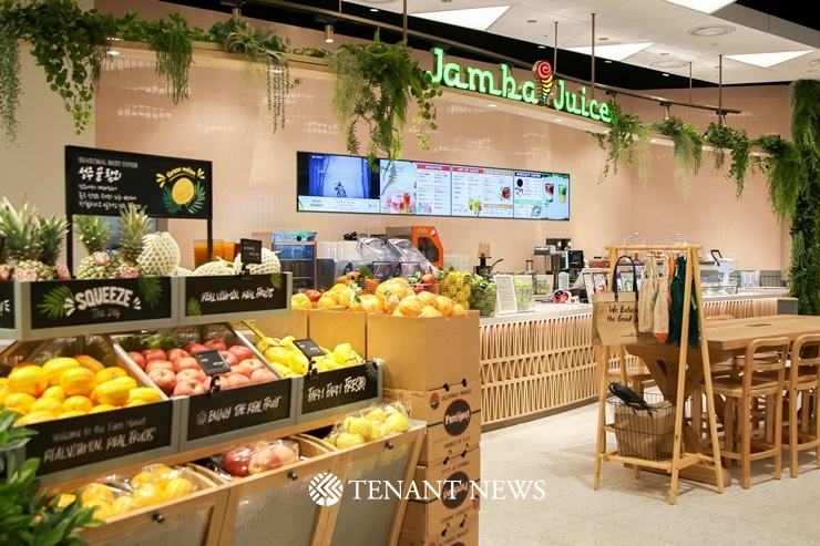 최근 새롭게 단장해 오픈한 롯데백화점 인천터미널점 지하 1층 식품관에 91㎡ 규모로 자리잡은 잠바주스 롯데백화점 인천터미널점은 신선한 과일과 이를 활용한 다양한 제품을 함께 판매하는 ‘종합 과일 그로서란트 마켓’ 콘셉트로 선보였다.