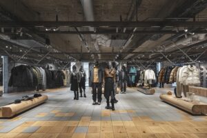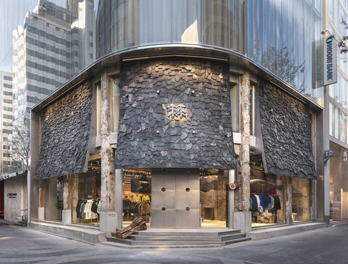 designed around the harmony of nature and urban structures. Spanning two floors, the space reflects the brand’s unique natural aesthetic through an understated interior featuring raw wood, metal, and concrete textures.
