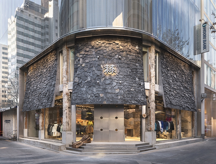 코오롱스포츠 서울은 건축 설계 단계부터 코오롱스포츠의 지향점인 ‘자연과의 연결’이라는 브랜드 철학을 공간에 구현하는데 초점을 맞췄다. 명동 상권 중심부에 위치한 코오롱스포츠 서울은 자연과 인공의 조화를 주제로 한 세일즈 중심의 플래그십 스토어다.
