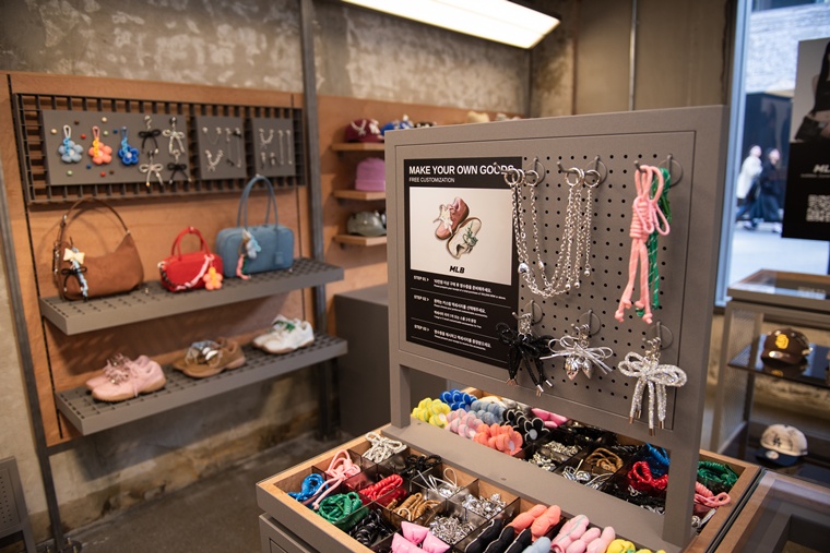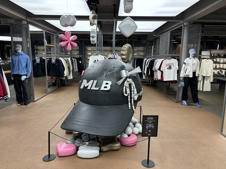 Among its flagship locations, MlB Seongsu stands out as a key store situated in Seongsu, an area known for its high foot traffic among Gen Z, young millennials, and international visitors. harmonizing with the district’s signature vintage yet hip atmosphere, the store embodies MlB’s unique brand identity. the building façade features a large-scale outdoor campaign visual of brand ambassador Karina, while the interior showcases a curated selection of products that fully express MlB’s identity. Reflecting the “Kku-Kku” styling trend—an aesthetic embraced by fashion-forward female consumers who enjoy expressive, detail-driven styling—the store offers a dedicated customization zone where customers can personalize MLB’s signature items, including caps, footwear, and bags. the space also incorporates experiential elements, allowing visitors to fully immerse themselves in the brand.