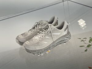이번 협업은 호카의 상징적인 트레일 러닝 모델인 ‘마파테 스피드 2(Mafate Speed 2)’를 기반으로 한다. 단순히 컬러를 바꾸는 협업을 넘어, 엑슬림 특유의 조형적 접근법을 통해 퍼포먼스 슈즈를 하나의 예술적 오브제로 재탄생시켰다.