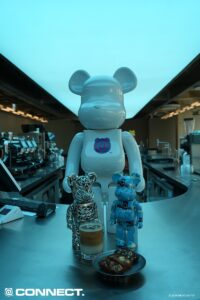 공간의 시각적 중심 잡기는 압도적인 크기의 조형물이 맡는다. 기네스북에 등재된 12,000% 사이즈의 ‘메가 베어브릭’이 랜드마크로서 방문객을 맞이한다. 특히 이 조형물은 할리우드에서 활동하는 세계적인 특수 분장사 겸 영화감독 히로시 타카기리가 디자인을 맡아 예술적 완성도를 높였다. 여기에 한정판 컬렉션을 포함한 스토어 구성과 브랜드 아이덴티티를 미각적으로 재해석한 카페 공간은 방문객이 머무는 시간 내내 베어브릭의 세계관에 몰입하게 만든다.