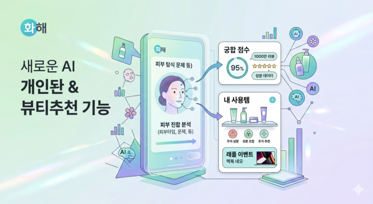 화장품 소비 패턴이 세분화되면서 뷰티 플랫폼 시장의 핵심 경쟁력이 ‘초개인화 큐레이션’으로 이동하고 있다.  화해글로벌(각자대표 이웅·김경일)의 이러한 산업 트렌드에 대응해 자체 인공지능(AI) 기반 맞춤형 정보 서비스인 ‘내 사용템’과 ‘궁합 점수’ 기능을 27일 공식 론칭했다. 단순한 랭킹이나 평점 제공을 넘어, 소비자가 본인 피부에 최적화된 화장품을 실패 없이 정확하게 찾을 수 있도록 돕는 진단 솔루션으로 플랫폼의 체질을 고도화한다는 목표다.