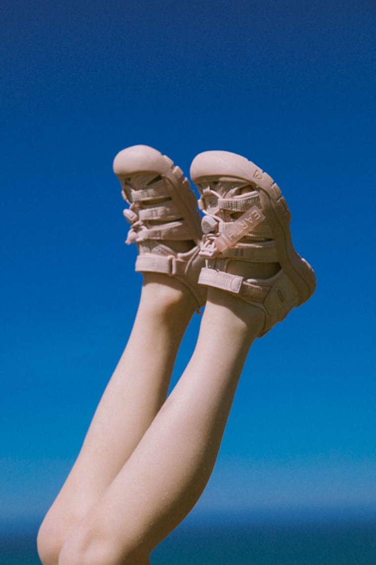 양사는 킨의 시그니처 샌들인 ‘뉴포트 H2’를 기반으로 얼스 특유의 모노톤 감성을 이식했다. 이번 컬렉션의 핵심은 절제미다. 핑크와 카키 두 가지 색상으로 출시된 제품은 신발 본체부터 끈(슈레이스)까지 하나의 톤으로 통일해 세련미를 극대화했다. 여기에 탈부착이 가능한 ‘EARTH’ 로고 고무 태그를 더해 브랜드의 정체성을 감각적으로 살렸다.
