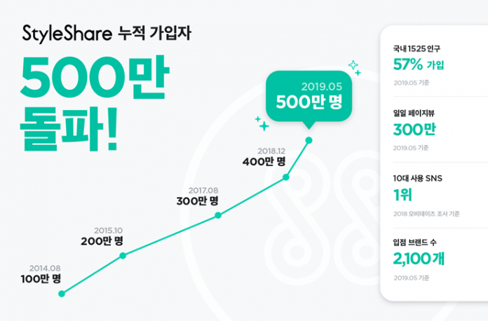 SNS 기반 쇼핑 앱 ‘스타일쉐어(대표 윤자영)’가 누적 가입자 500만 명을 돌파했다고 10일 밝혔다. 이는 작년 말 기준 400만 명을 돌파한 지 약 5개월 만의 성과다.