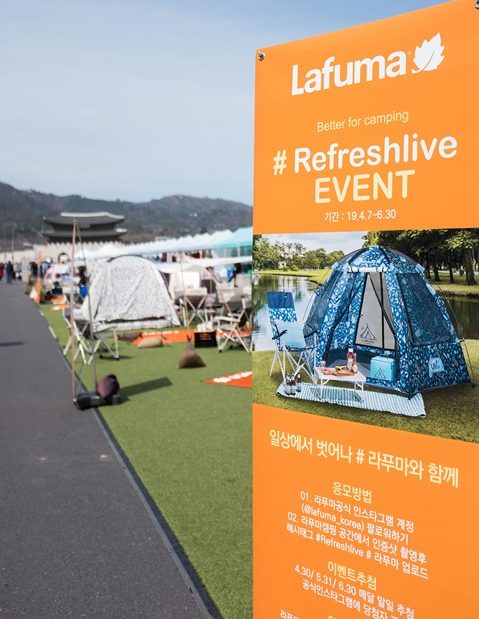 라푸마는 이 같은 서울시의 취지에 깊게 공감, 지난해에 이어 올해도 서울 세종대로 일대 600m2(약 180여평) 면적의 공간에 그늘막 텐트 10동, 캠핑의자 20개로 구성된 캠핑존을 설치하였으며, ‘#REFRESHLIVE(일상을 새롭게)’를 테마로 한 캠핑존을 운영, 매주 일요일 세종대로를 도보로 통행하는 서울 시민들이 편하게 쉴 수 있는 공간이자 라푸마의 스타일리시한 캠핑 용품 체험을 위한 공간으로 꾸밀 예정이다.